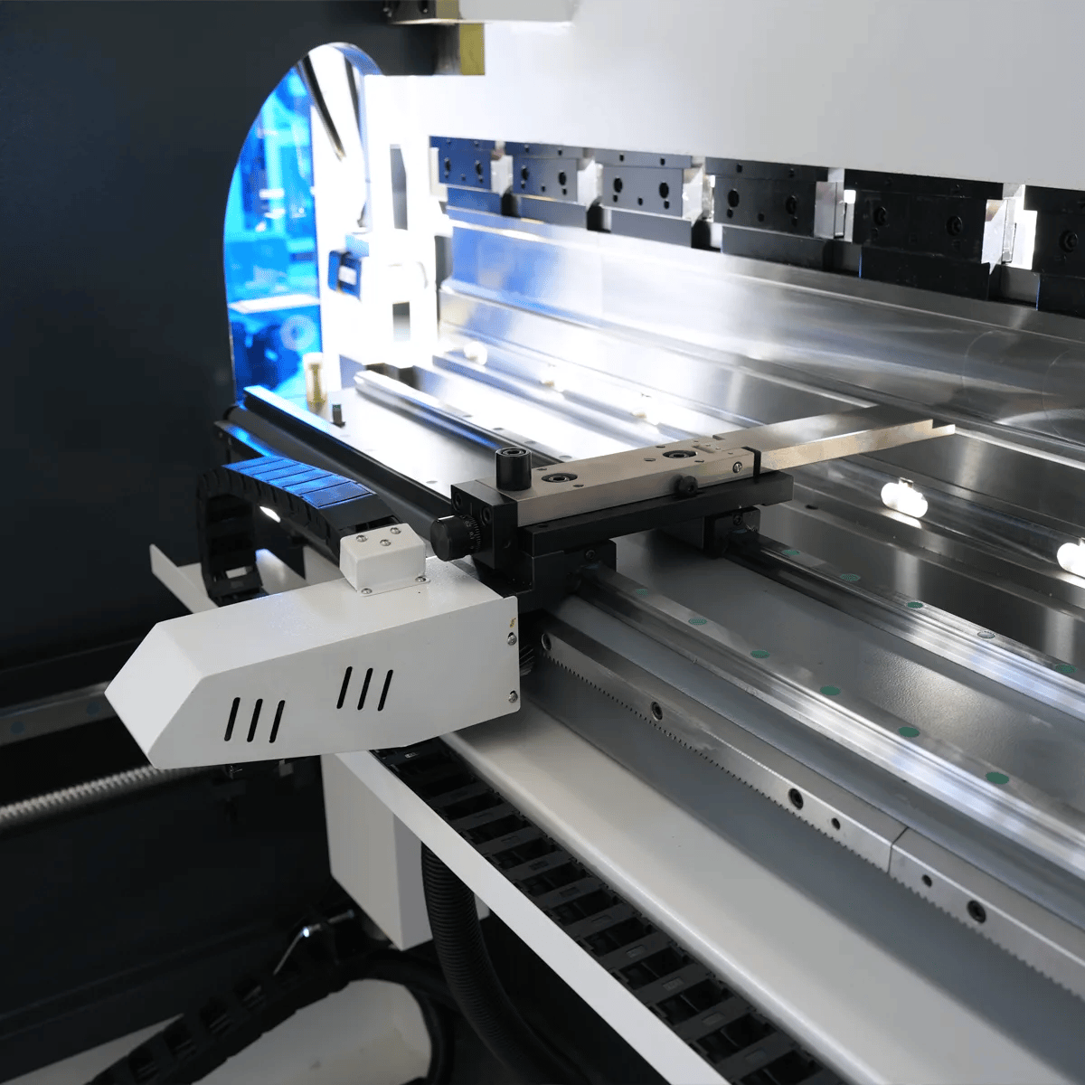 O sistema de batente traseiro de alta precisão permite que os clientes insiram as dimensões do produto no sistema, e o posicionamento seja feito com exatidão de 0,01 mm.