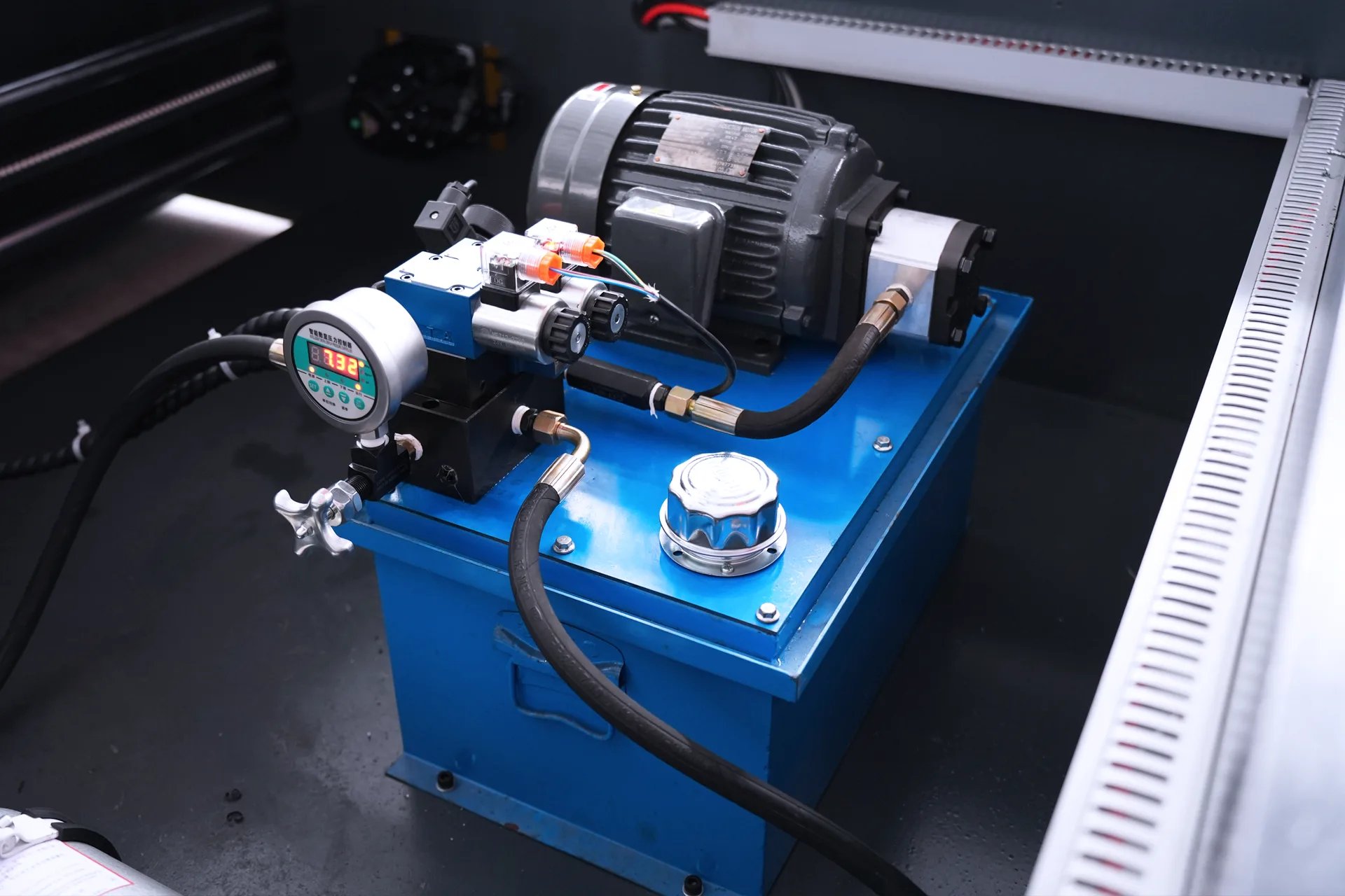 O sistema hidráulico é controlado por um controlador CNC, que fornece com eficiência uma potência hidráulica robusta para as pinças dianteiras e traseiras, garantindo que estas prendam firmemente a chapa metálica durante a operação e assegurando a precisão do ranhuramento.
